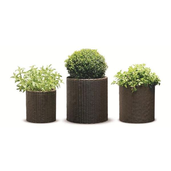 Keter Round Cylinder Plastic Resin Rattan Garden Planters 3 Piece Set Overstock 12060848 from ak1.ostkcdn.com