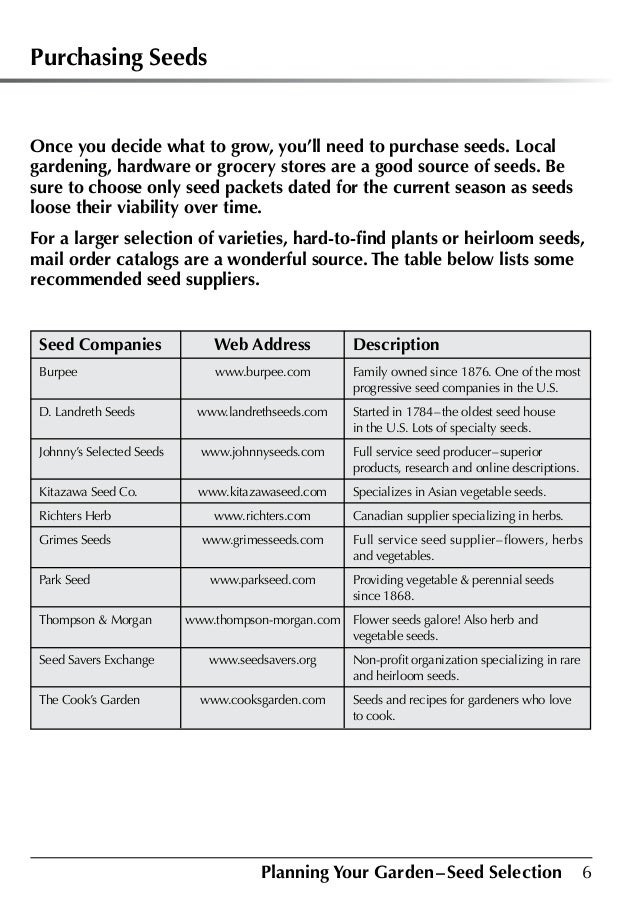 Images. When planning for a garden, a key thing to consider is whether you want to start your garden from seeds or from young plants (transplants) bought from a local nursery. While seeds are inexpensive when compared to the cost of vegetable.