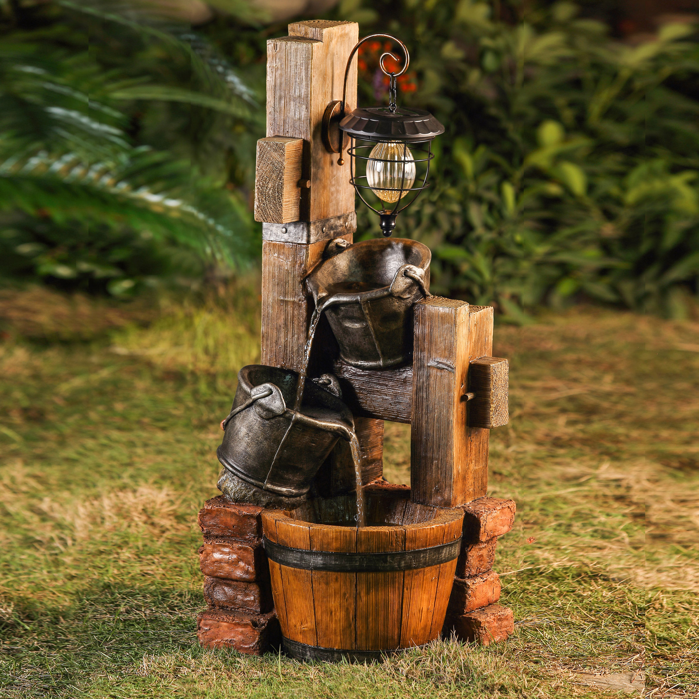 View Solar Powered Water Feature Barrel